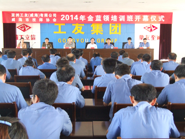 9月13日,亞洲工友(威海)有限公司、威海市技師協會2014年金藍領培訓班開幕儀式在公司技術樓四樓會議室舉行,威海市勞動和社會保障局、威海市技師協會、威海職業技術學院等相關領導以及公司木機事業部總經理董品洲出席了開幕儀式。